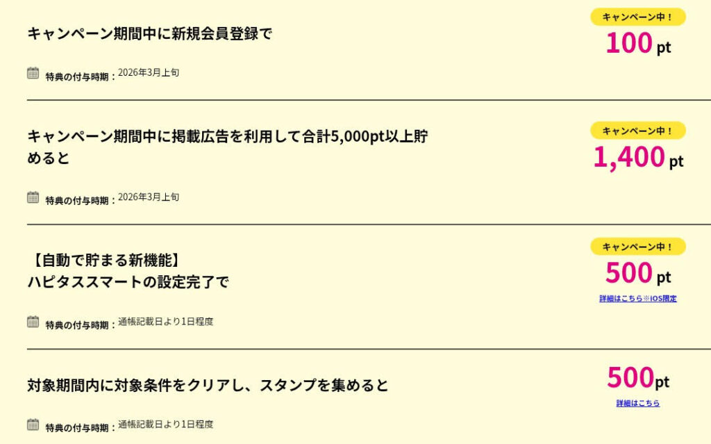 さらに、画像にもある通りではございますが、IOS限定でハピタス スマートの設定完了で500円分ものポイントももらうことが可能です。